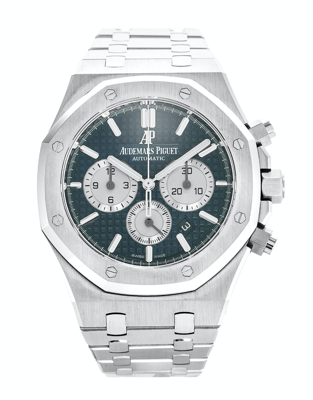 This is a Brand New Audemars Piguet Royal Oak Chronograph 41mm Mens Watch. It has a 41mm Stainless Steel Case, a Blue Grande Tapisserie Dial With White Gold Hour-Markers on a Stainless Steel Bracelet. This watch is powered by Automatic Movement.