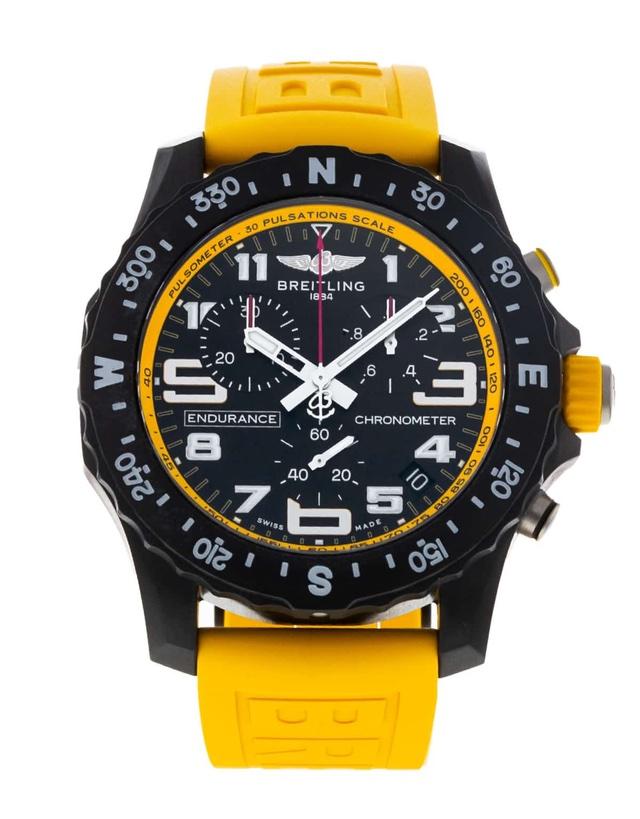 This Breitling Professional Endurance Pro Yellow Rubber Strap Mens Watch has undergone a thorough inspection of water resistance, accuracy, functionality and condition. It has also been referenced against technical documents and manufacturer records where available to ensure authenticity and a clean history.